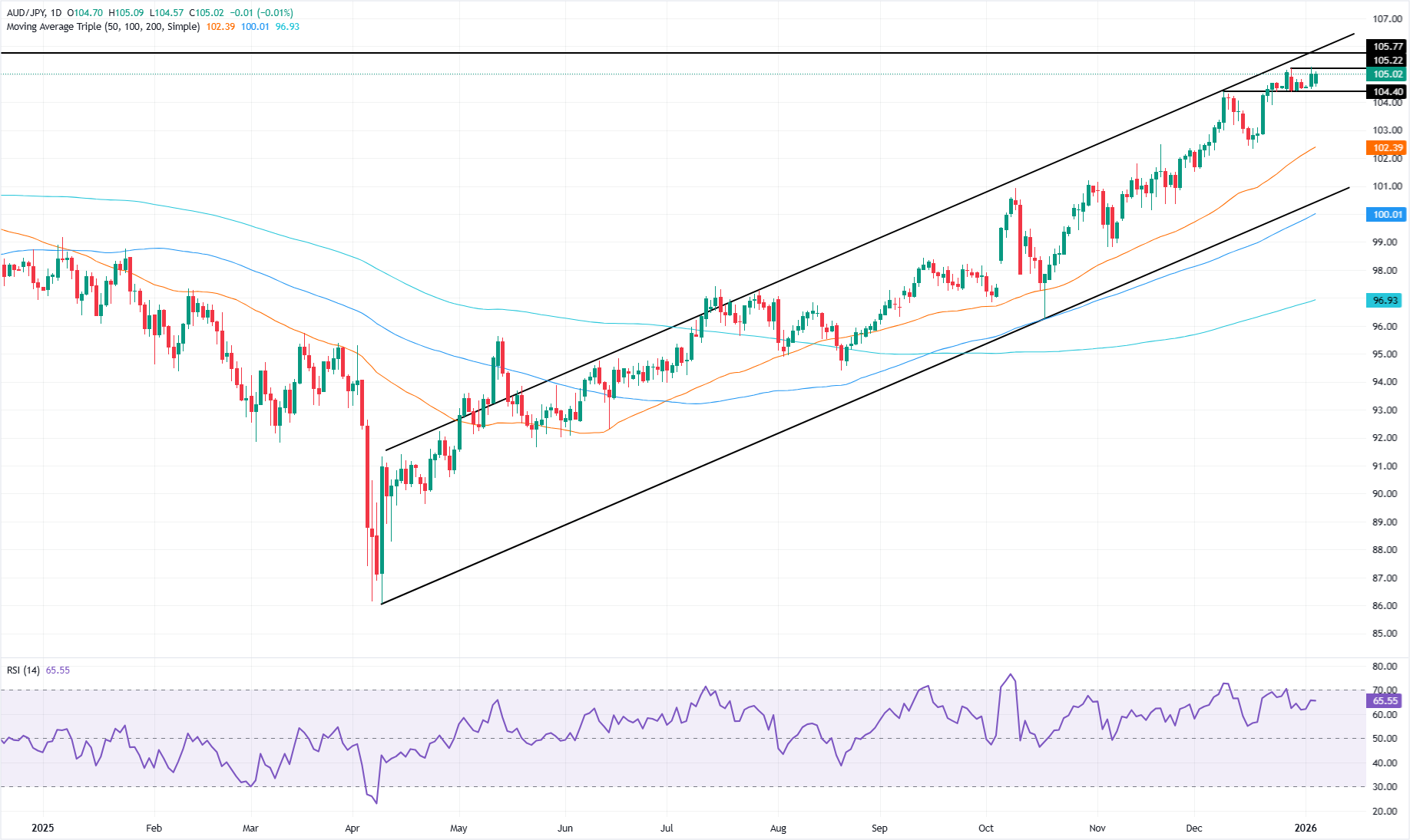 澳元在周一对日元回落,下跌0.05%,此前日本央行行长植田和男透露,如果经济和通胀趋势与我们的预测一致,央行将加息。撰写时,澳元/日元交易于105.00,几乎没有变化。