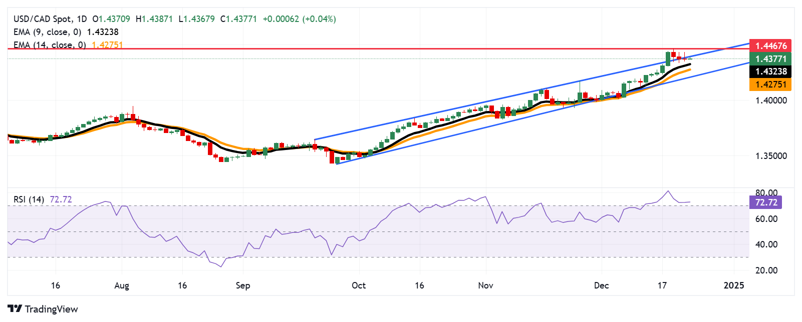 圣诞节前交易清淡,美元/加元在1.4400附近震荡