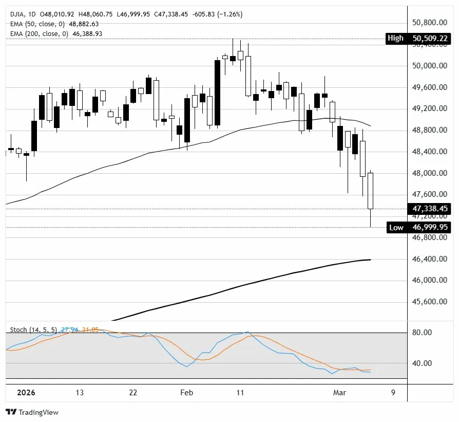 截至发稿时,道琼斯工业平均指数周五下跌约600点,或1.26%,接近47,340,结束了一个惨烈的一周,该蓝筹股指数下跌超过1000点