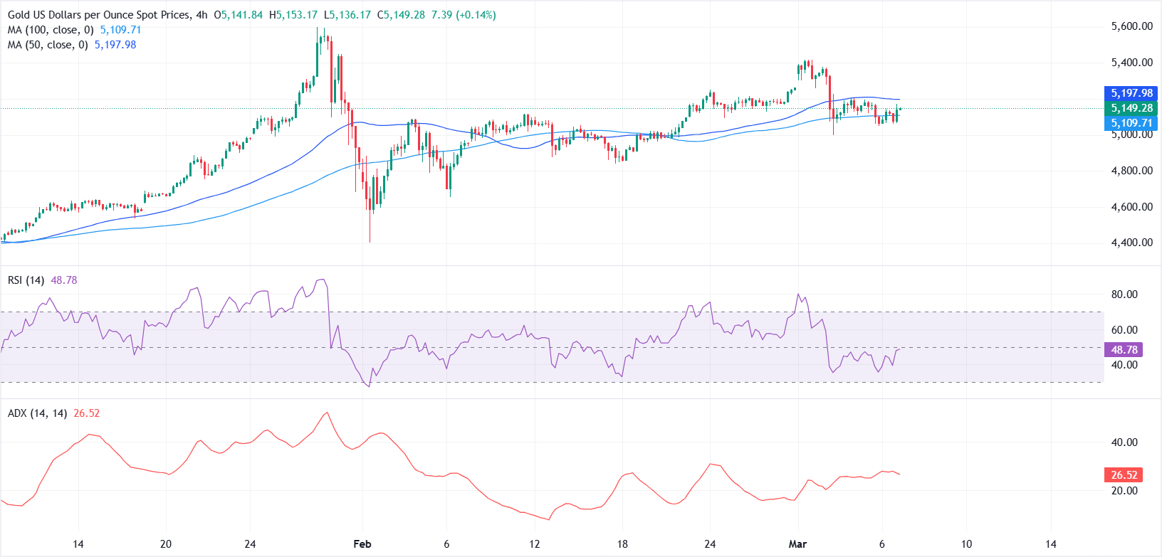 周五北美时段,金价(黄金/美元)因美国就业报告弱于预期以及中东冲突引发的避险市场情绪而上涨。撰写时,黄金/美元交易接近5140美元,上涨超过1%