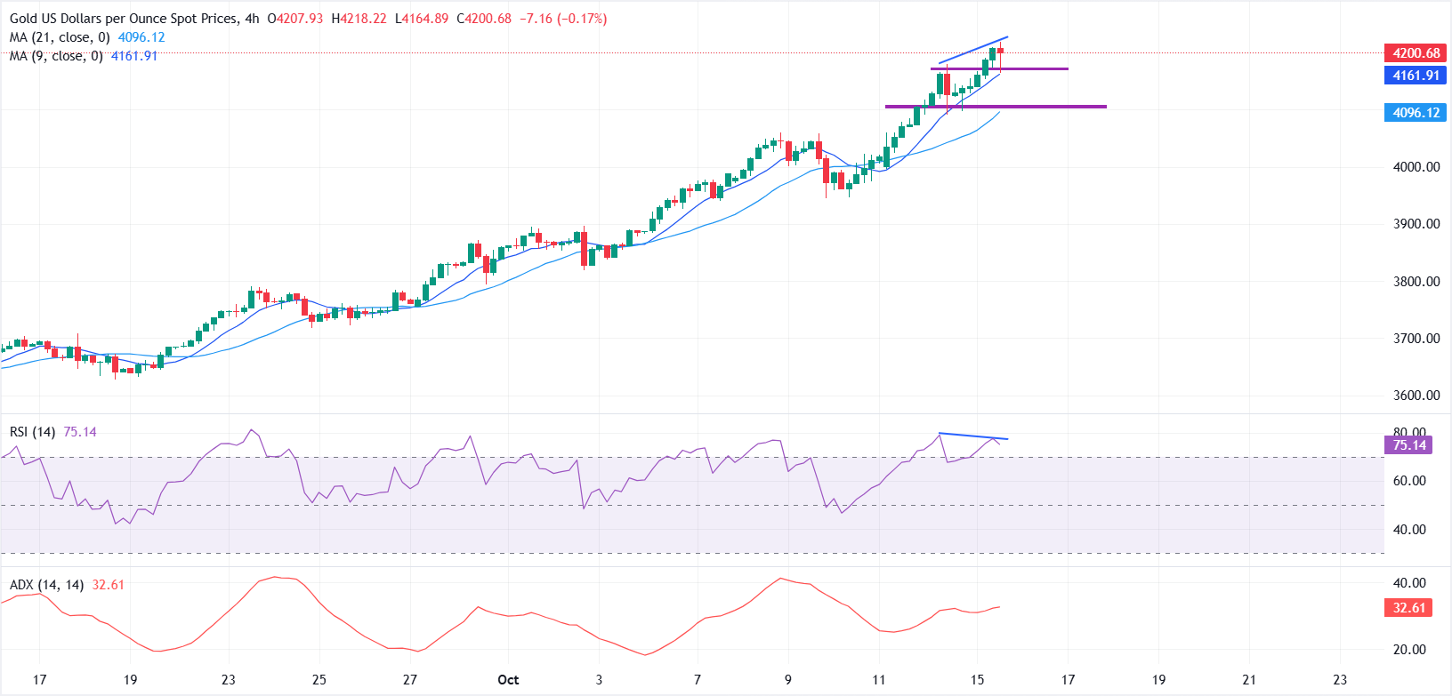 黄金(XAU/USD)在周三继续创下纪录,突破4200美元,因强劲的避险资金流入保持需求高涨。这种黄色金属几乎每天都在创下新高,受到持续的全球经济和政治不确定性以及对美联储(Fed)温和立场的日益预期