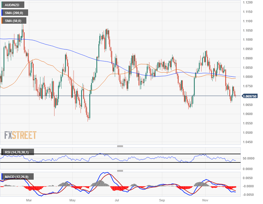 澳元/纽元本周稳步回落,从上周晚些时候的震荡高点跌落至1.0750。澳元(AUD)本周大体走低,澳元兑其他主要货币疲弱。 在 2023 年的大部分时间里,澳元/纽元大致盘整于震荡区间,处在大致介于