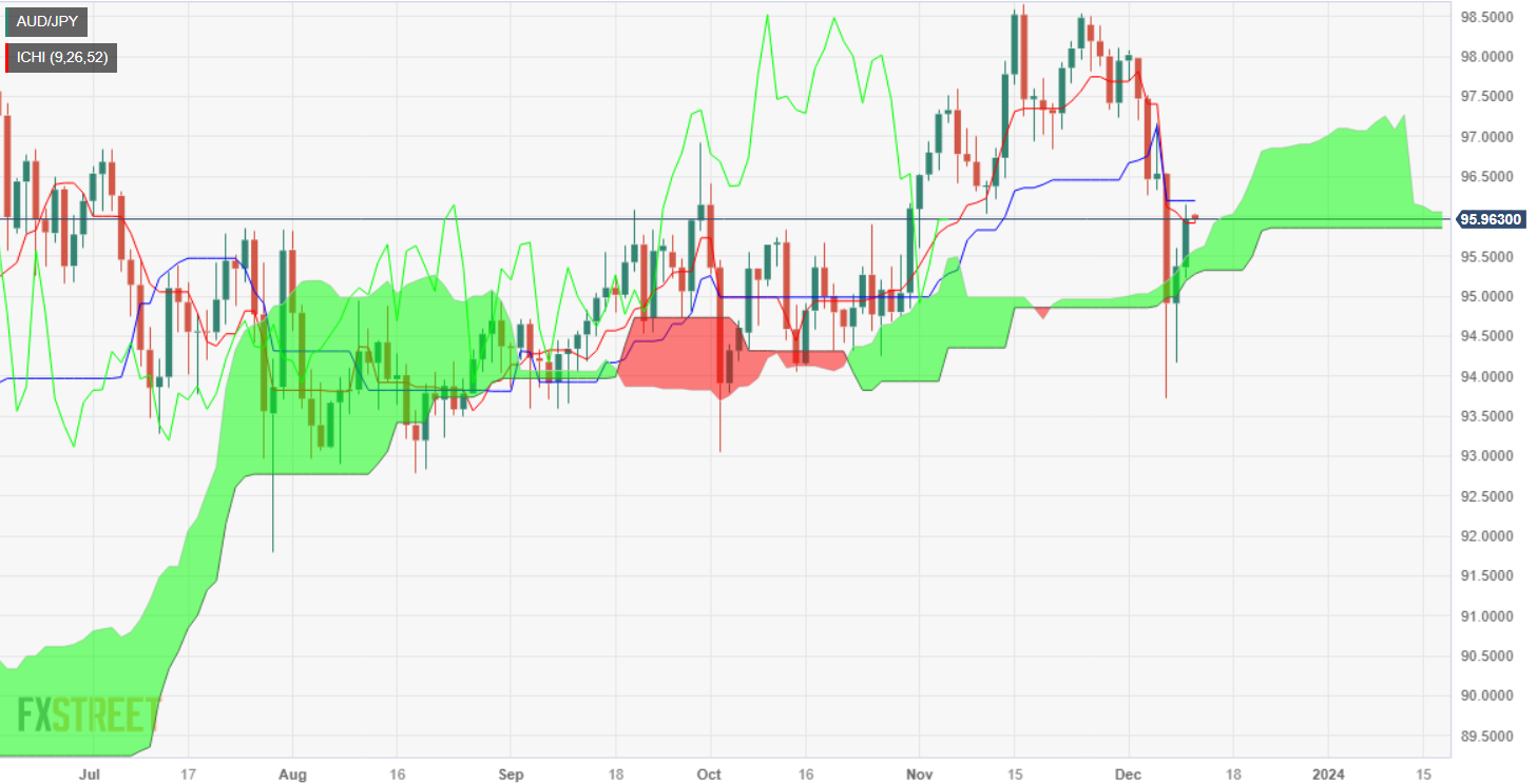 澳元/日元价格分析:突破一目均衡图云图挣扎于 96.00 附近,空头来袭