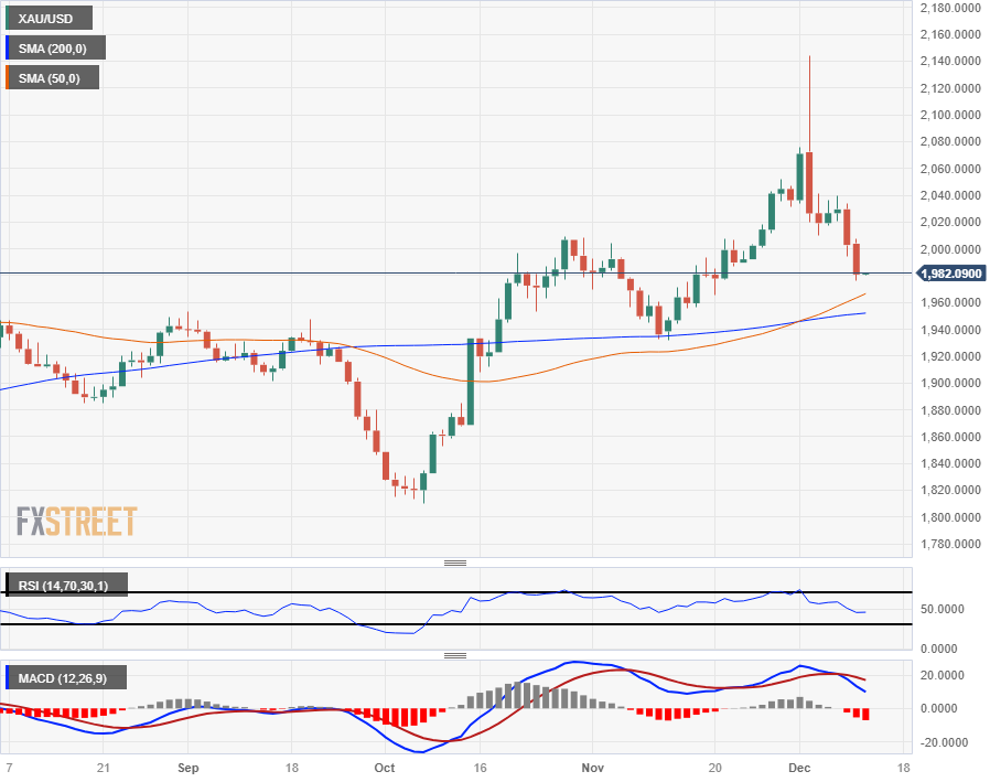 周一金价进一步下跌,跌回2000美元关口下方,缓步跌至1980美元附近,因为市场准备迎接周二新一轮的美国消费者物价指数通胀数据。周三,美联储(FED)将在周三公布2023年美联储最后一次利率决议。