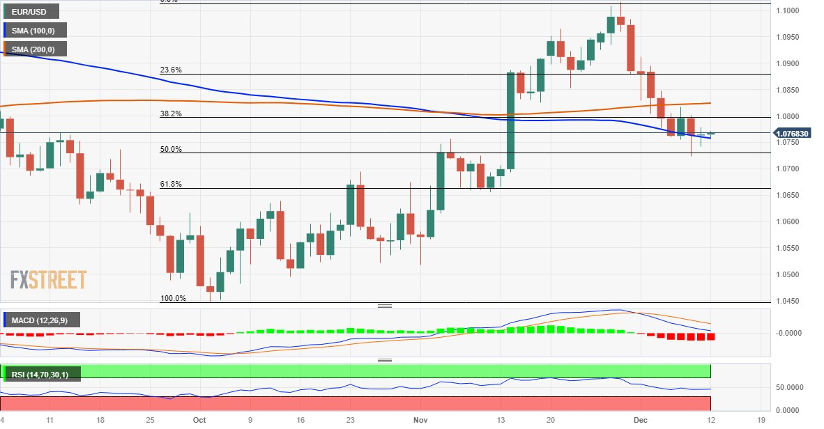 欧元/美元价格分析:盘整于 1.0765-70 区域/100 日均线附近,焦点处在美国通胀数据