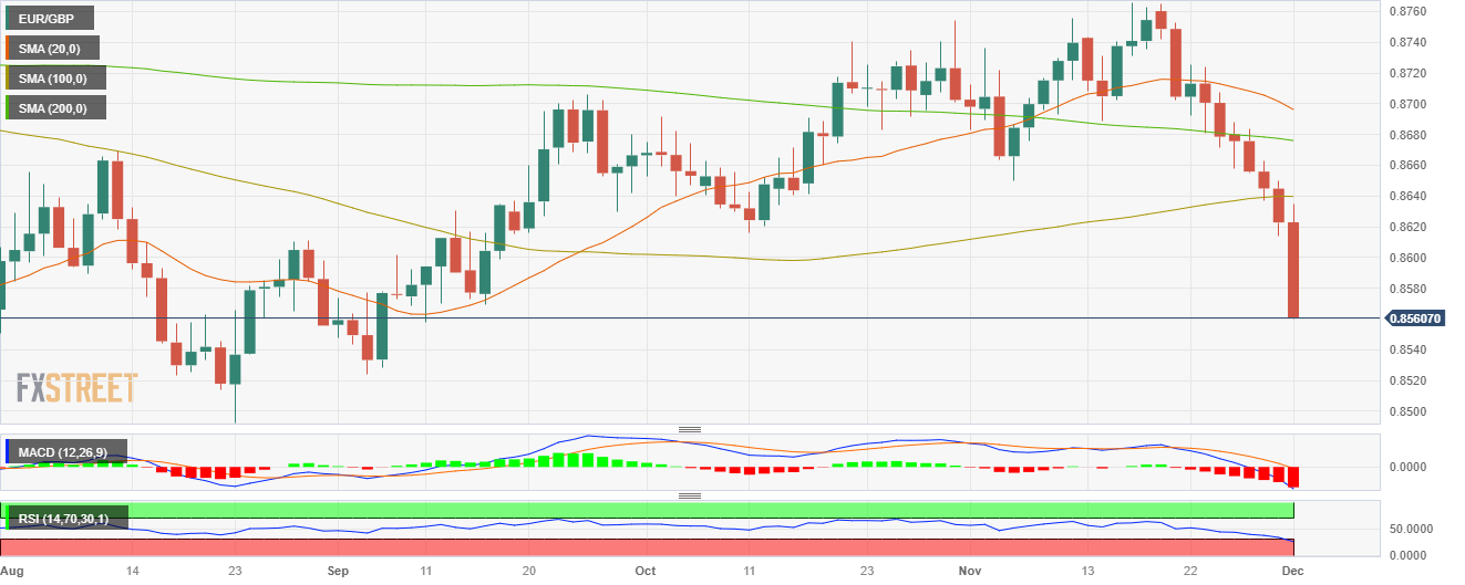 欧元/英镑跌至 9 月以来低点,出现超卖