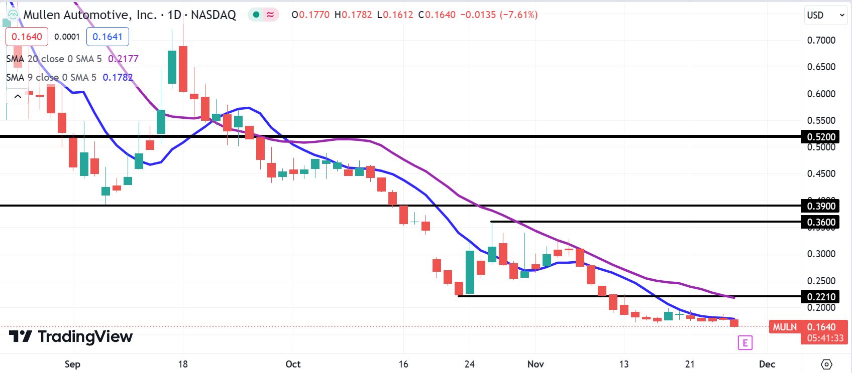 受欢迎的电动汽车低价股Mullen股票汽车(Mullen Automotive)周二下跌7.6%,在第一个小时下跌后相对持平。这家总部位于加州的公司的股价在过去一个月里下跌了39%,因为市场正在等待