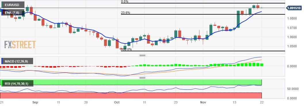 欧元/美元价格分析:欧央行行长拉加德发表鹰派讲话,欧元/美元处在1.0900上方