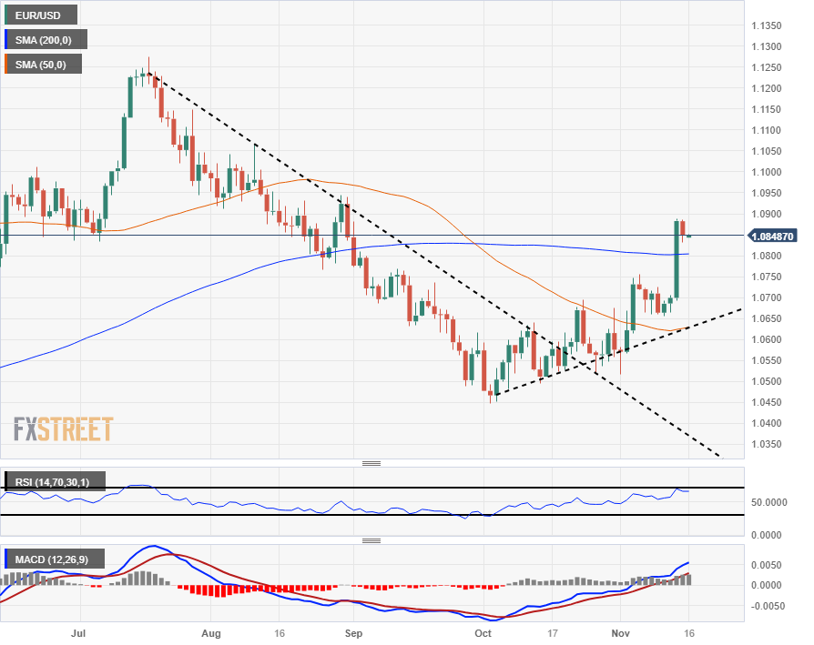 欧元/美元未能延续反弹势头,周三小幅下跌。 周三早些时候公布的欧元区工业生产数据差于预期,欧元区9月季调后工业产出月率为-1.1%,比上月的0.6%大幅下滑,也低于预期的-0.7%。 数据不佳后,