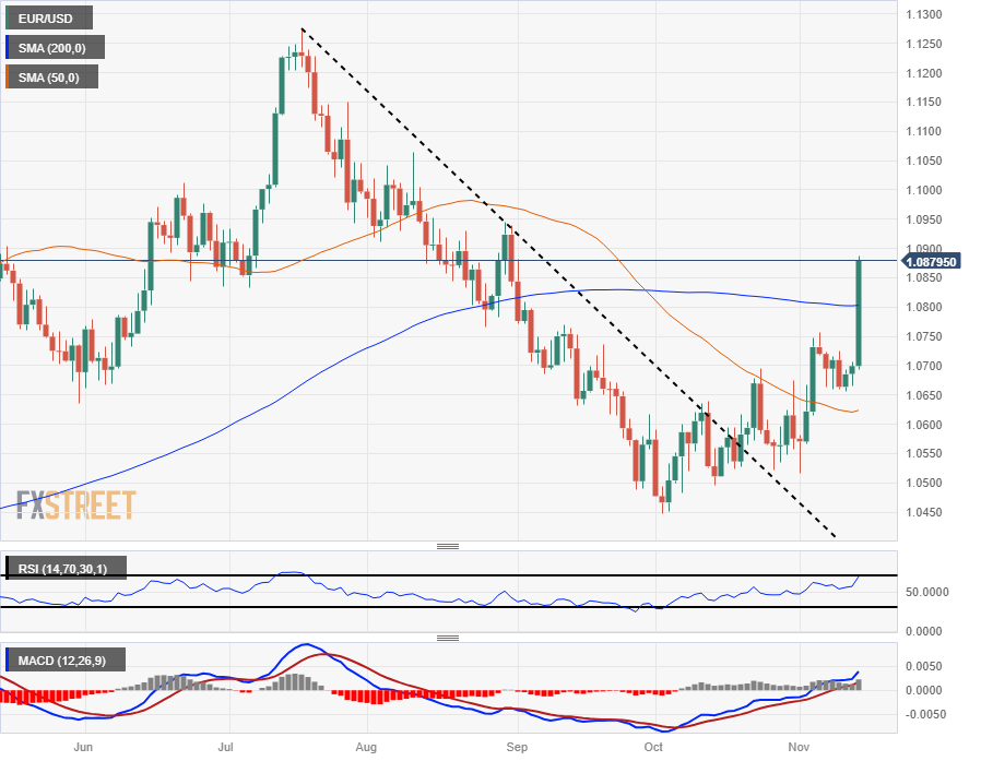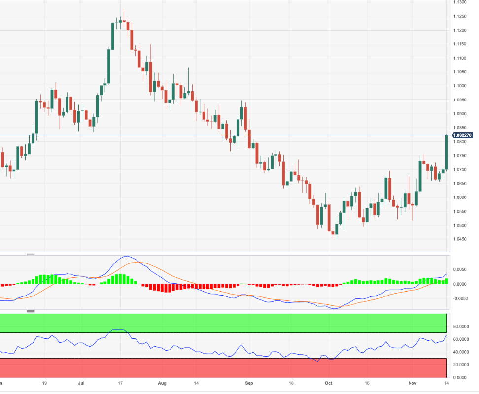 - 欧元/美元突破了 1.0800 关口或数周高点。 - 在 1.0800 以上似乎会有更多涨幅。 欧元/美元加速上涨,自 9 月初以来首次突破 1.0800 关口。 如果今天明显突破 200