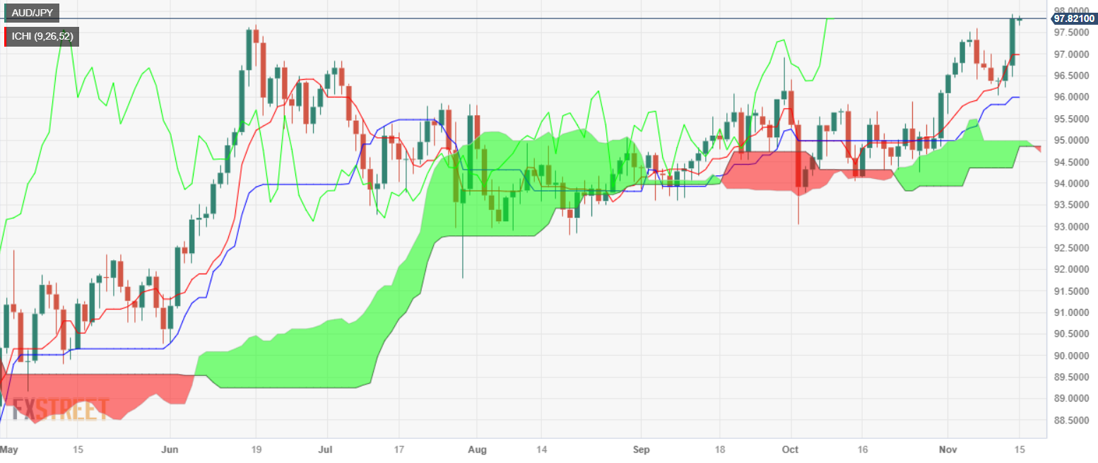 周二,澳元/日元因风险偏好改善而扩大涨幅,因为市场猜测由于10月通胀疲弱,美联储不会加息。因此,寻求风险的交易者追捧高风险货币,这不利于日元的避险地位。澳元/日元目前交投于 97.87 点,涨幅超过