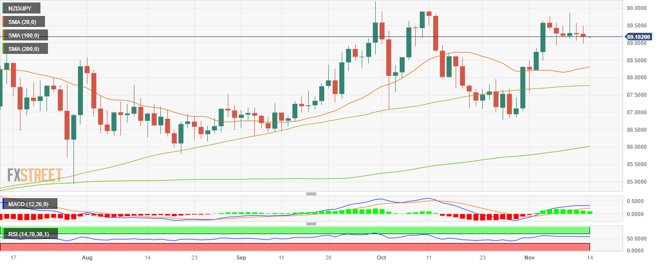 纽元/日元持稳在89.15附近,多头延续盘桓
