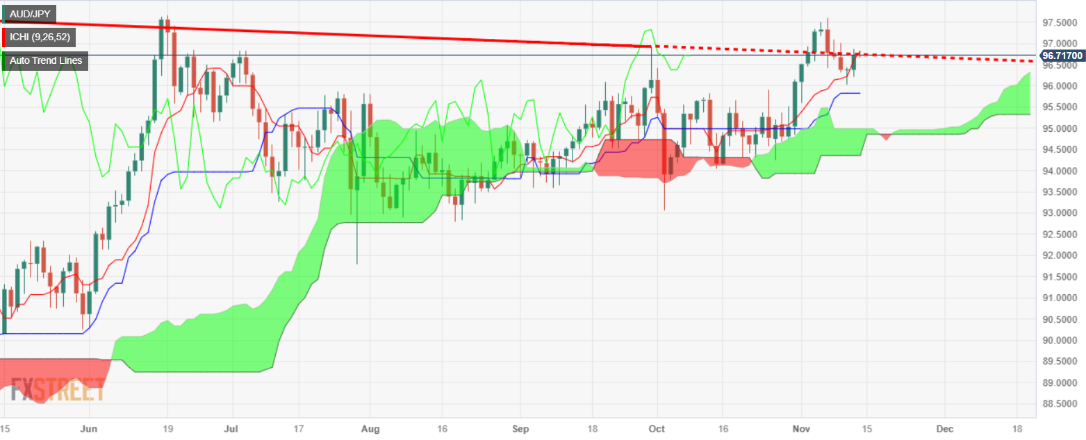 澳元/日元价格分析:挣扎于基准线附近,指向97.00水平