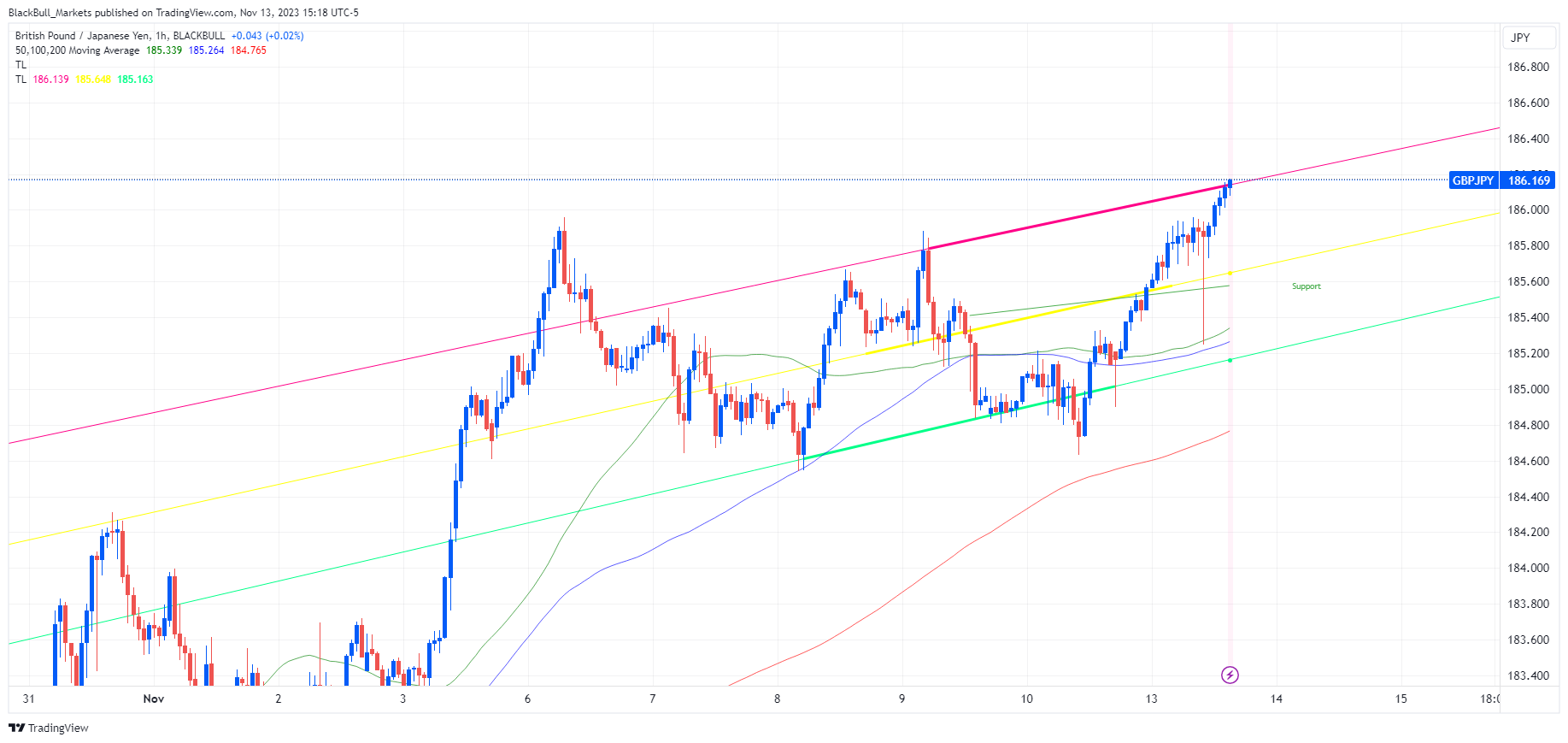 英国的通胀数据将于本周三公布,预计该数据从前值6.7%大幅下降至4.8%。大幅下降预留巨大失望空间,CPI上升可能给已经处于数月高点的英镑/日元带来上行压力。基于这点原因,我增加了这种可能性,也即交易