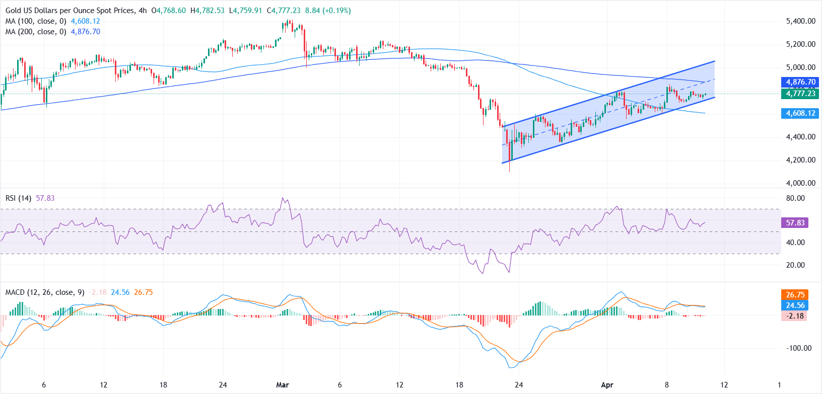 黄金(黄金/美元)周五持稳,但缺乏强劲的上行动能,市场继续关注中东局势的演变,同时交易员消化最新的美国通胀数据。撰稿时,黄金/美元交投于约4775美元,正有望实现连续第三周上涨。