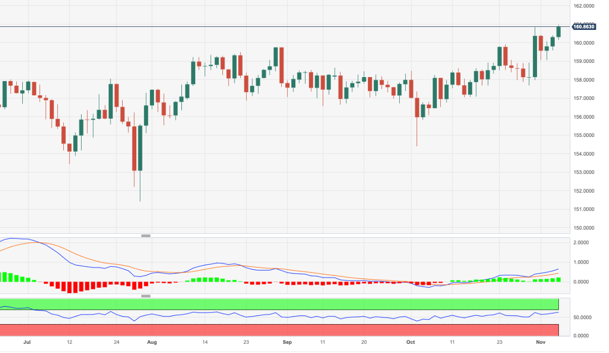 本周初,欧元/日元在略低于 161.00 的水平创下年内新高。 短期内,交叉盘似乎有望进一步上行。在这种情况下,若突破 2023 年高点 160.98(11 月 6 日),下一个重要阻力位将在 20