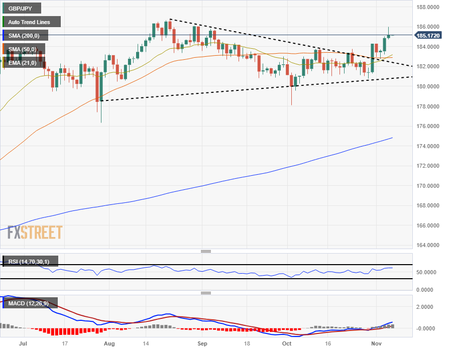 英镑/日元价格分析:寻求收复 186.00 水平