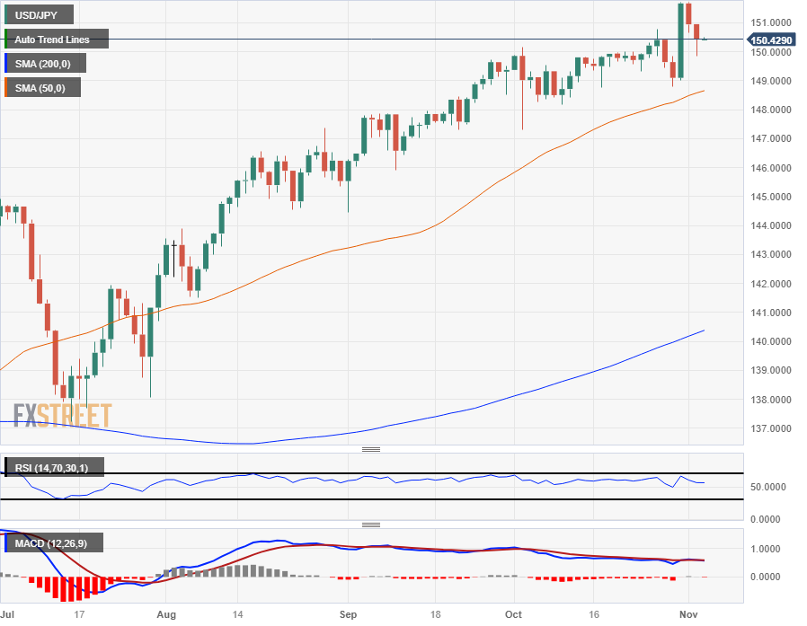 美元/日元徘徊于 150.50 附近,美国非农公布在即