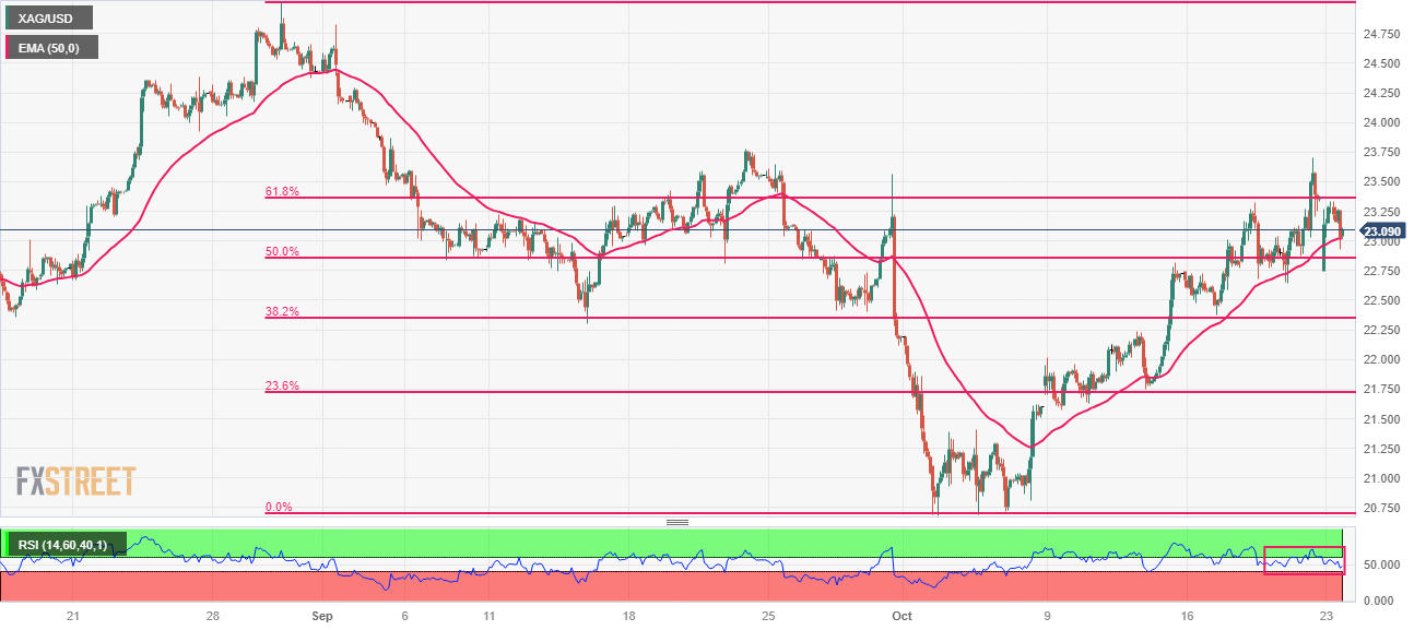 银价(XAG/USD)从23.70美元附近的月度高点回落,因为纽约时段10年期美国国债收益率升至5%。在数据疲软的情况下,白银价格跌至 23.00 美元附近。长期美债收益率升至 2007 年以来的新高
