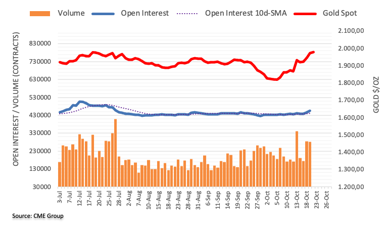 根据芝加哥商业期货交易所集团初步数据,周四黄金期货市场未平仓合约连续第三日增长,此次增长约0.95万份。相反,成交量恢复下行,下降约0.27万份,前日增长。 黄金:迈向2000美元 金价于周四进一