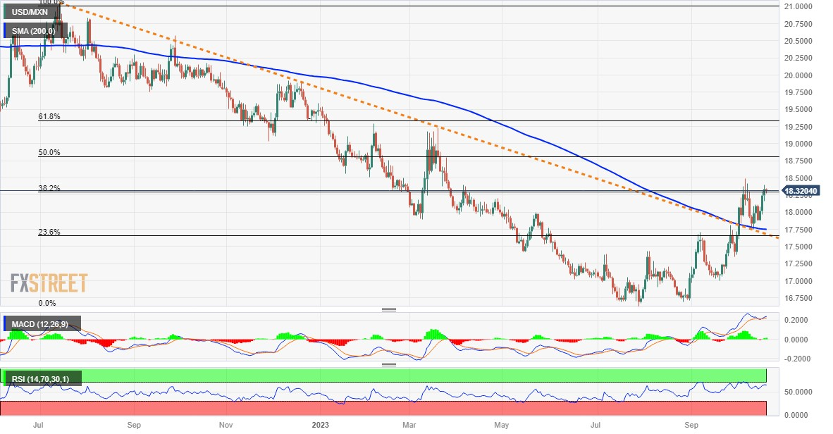 周五亚市,美元/墨西哥比索难以延续过去三天录得的周涨幅,处在微涨/微跌当中。美元/墨西哥比索目前交投于18.3185附近,日内跌幅不到0.10%,仍在周四触及的近两周高点附近。 从技术角度看,上周