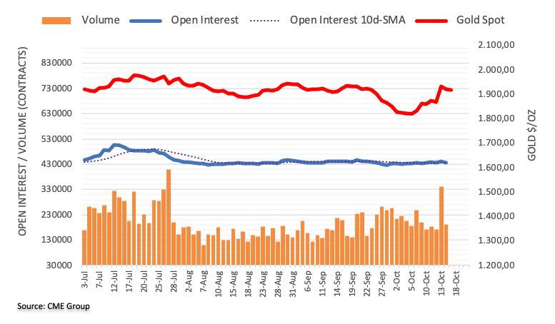 芝加哥商业期货交易所集团黄金期货市场的最新数据显示,周一交易员减持其未平仓合约0.52万份,结束前日增长。成交量下降近15万份合约。 黄金:在1900美元附近面临不错的支撑 周一金价下跌之际未平仓
