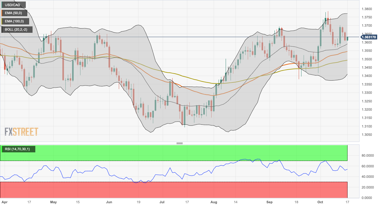 美元/加元整理于 1.3600 中档附近,下行空间似乎得到缓冲
