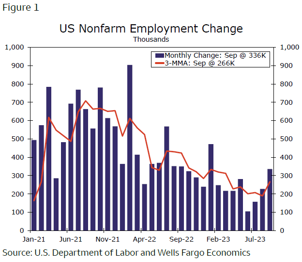“被动”收紧货币政策,对经济施加越来越大的逆风 我们估计,2023年第三季度的实际GDP年化增长率超过4%。此外,增长似乎在支出的大多数组成部分都是广泛的。 尽管美国经济最近表现出弹性,但我们认为联邦