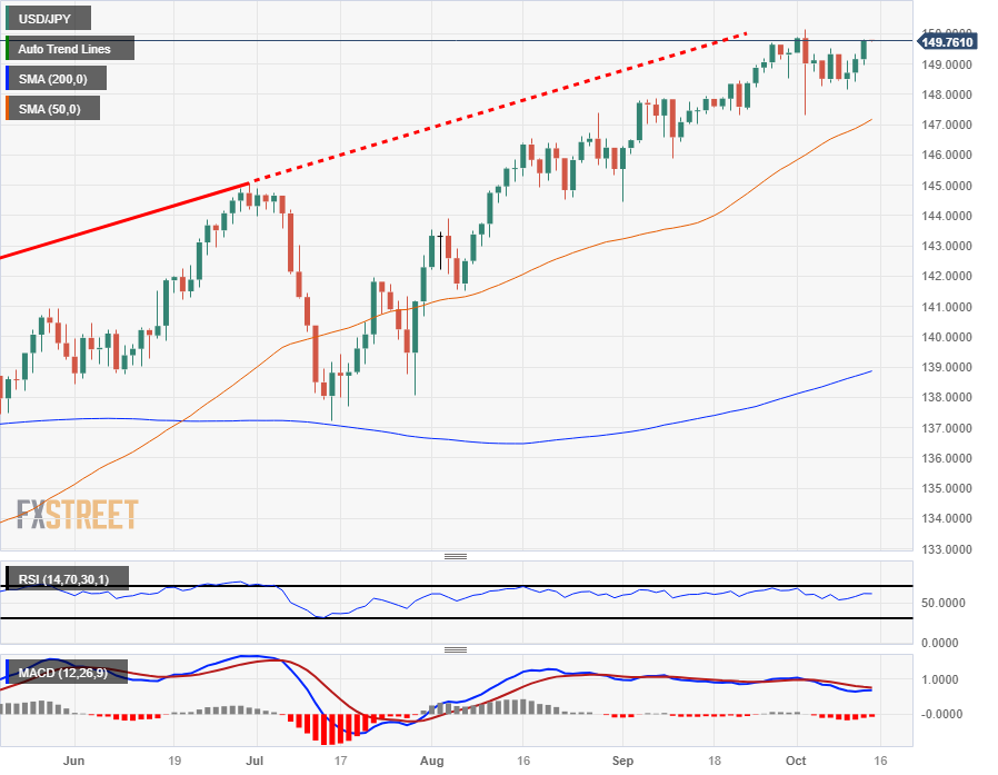 美国通胀强于预期引发一轮避险情绪,美元/日元反弹接近 150.00水平