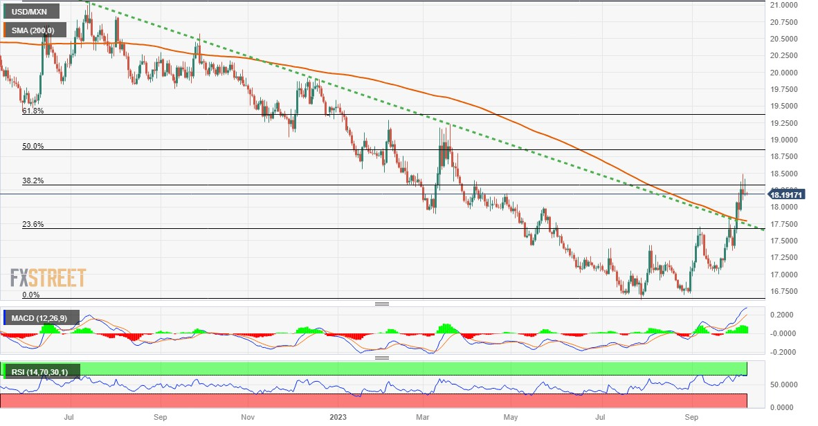 美元/墨西哥比索价格分析:盘整于 18.20 附近,遇阻38.2%菲波纳契位