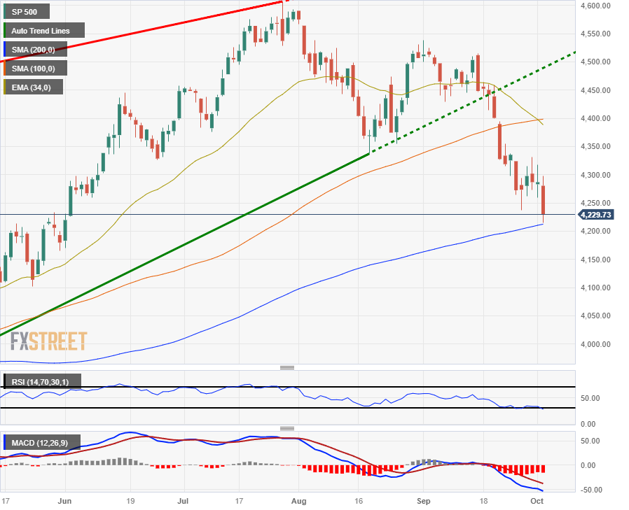 标普 500 指数跌至五个月低点 4230,美债收益率创下历史新高