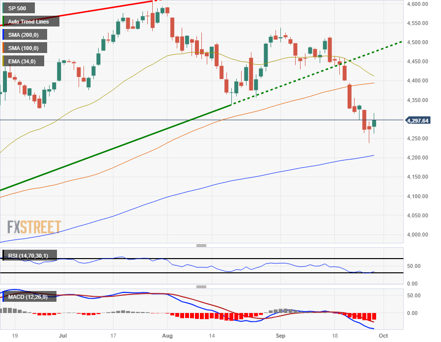 标普 500 指数反弹至 4,300 ,但 9 月依然下跌