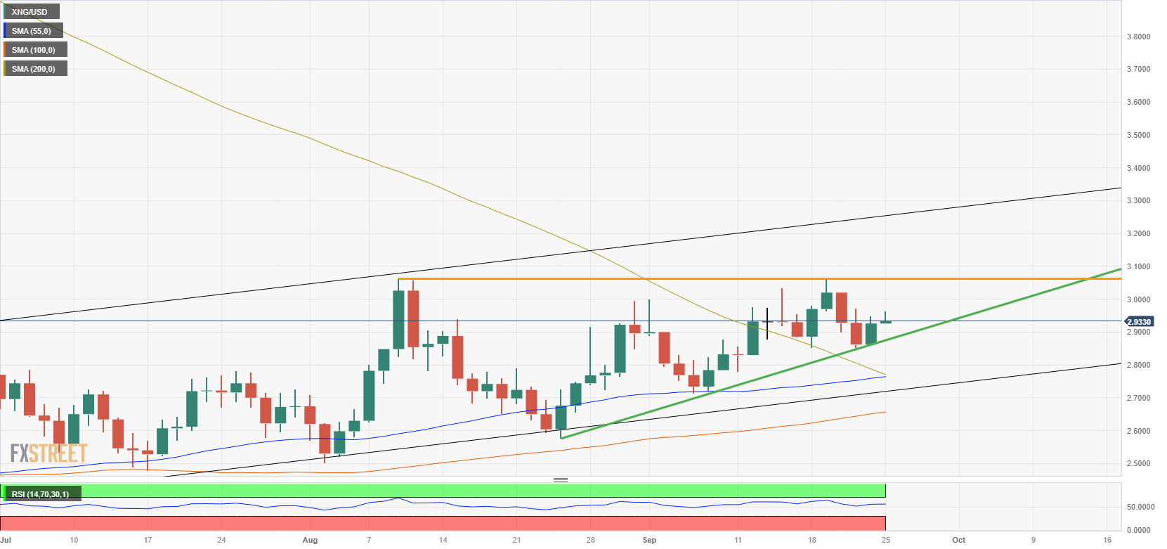 本周天然气价格温和上涨,上涨1.00%。 美元面临美国汽车工人联合会罢工和美国政府关闭风险的逆风。 美国天然气价格正处于上升趋势线形态,可能突破3美元。 随着挪威对欧洲的液化天然气供应再次中断,天然气