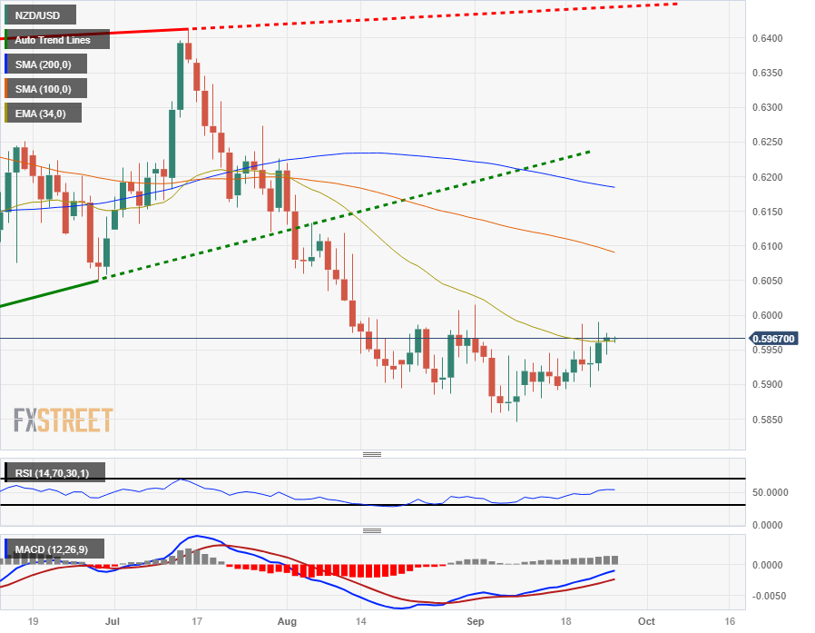 纽元/美元自上一波段高点滑落至 0.5985 之后,短期内出现了一些盘整。 纽元/美元已从 9 月低位 0.5850 附近反弹 2%,但仍然坚定看跌,自 7 月高位 0.6400 附近下跌愈 7%。