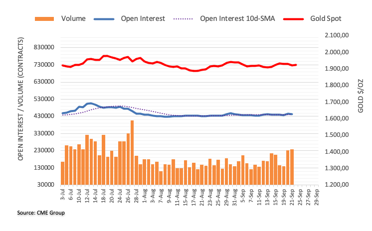 芝加哥商业期货交易所集团黄金期货市场的最新数据显示,周四交易员减持其未平仓合约超过0.4万份。相反,成交量连续第二日增长,此次增长约0.63万份。 黄金:下一个阻力在1950美元 金价于周四连续第