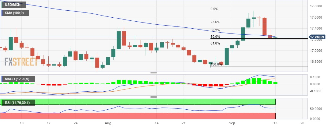 美元/墨西哥比索价格分析:在50%菲波纳契位附近获得支撑,仍遇阻 100 日均线