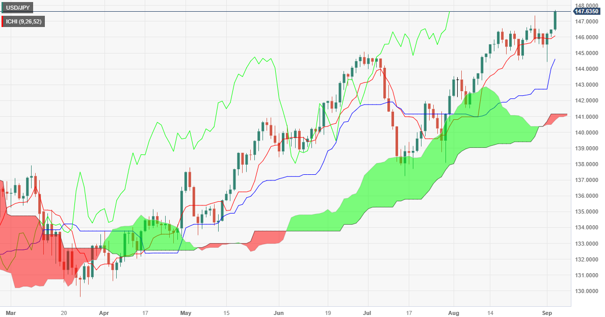 据标准普尔全球透露,由于全球商业活动放缓,避险情绪和美国国债收益率(主要是 10 年期国债收益率)飙升,日元对美元汇率跌至 10 个月低点。因此,美元/日元在触及 147.70 的年内高点后,目前交投