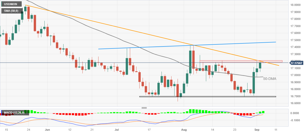 美元/墨西哥比索价格分析:美国和墨西哥数据公布,测试17.20附近的关键水平
