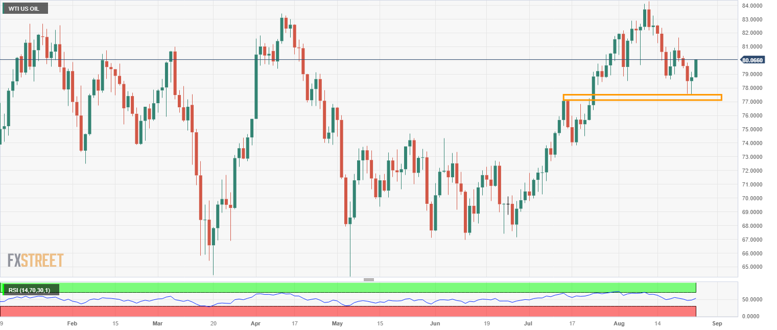 油价脱离低点,因为在上周三石油数据大幅缩减的背景下形成了一个双底。WTI 原油价格在 77.53 美元形成了一个双底,周三和周四的价格走势都从该价位反弹。今天上午俄罗斯的头条新闻再次推动油价上涨,因为