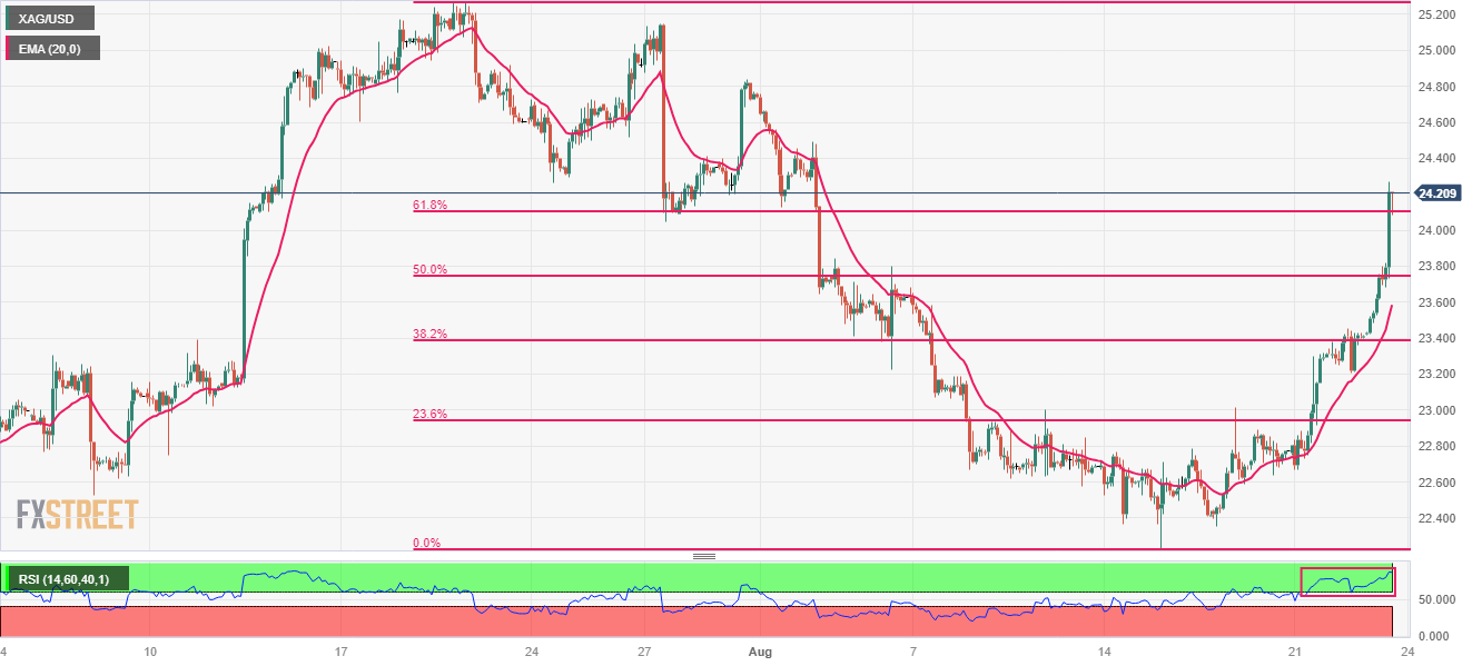白银价格预测:由于PMI 疲软导致美国收益率下降,白银/美元 攀升至 24.00 美元上方