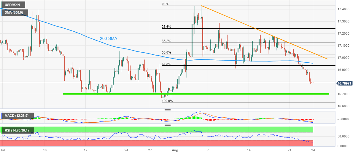 美元/墨西哥比索价格分析:空头指向 16.70,即便相对强度指标背离