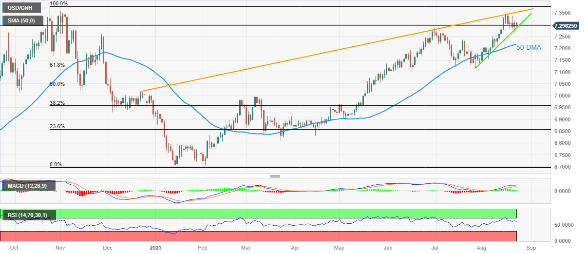 美元/离岸人民币价格分析:美国采购经理人指数来袭,挣扎于月度趋势线7.3000附近