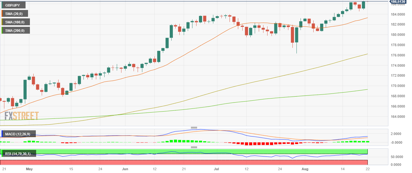 周初,在日本央行鹰派押注的推动下,英镑/日元叉盘持续走强,跃向 186.50。上周,英国公布 7 月通胀和薪资数据,这使得市场预期英国 7 月最终通胀率为 6%,而周初预期为 5.75%,这使得英镑在