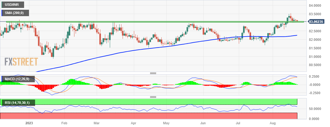 美元/印度卢比价格分析:徘徊于83.00的阻力突破点,看涨潜力犹存
