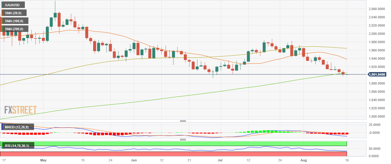 周二盘中,金价 面临抛售压力,失守 200 日简单移动均线,跌至每盎司 1,900 美元。从这个意义上说,看跌压力可归因于市场在为美联储再度加息做准备,不是在9月,而是在11月。最新数据显示,7 月整