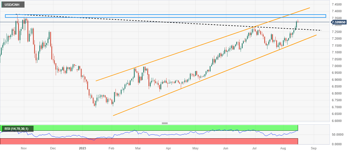 美元/离岸人民币价格分析:中国经济数据疲弱,美元/离岸人民币整理于9个月低点7.3200附近