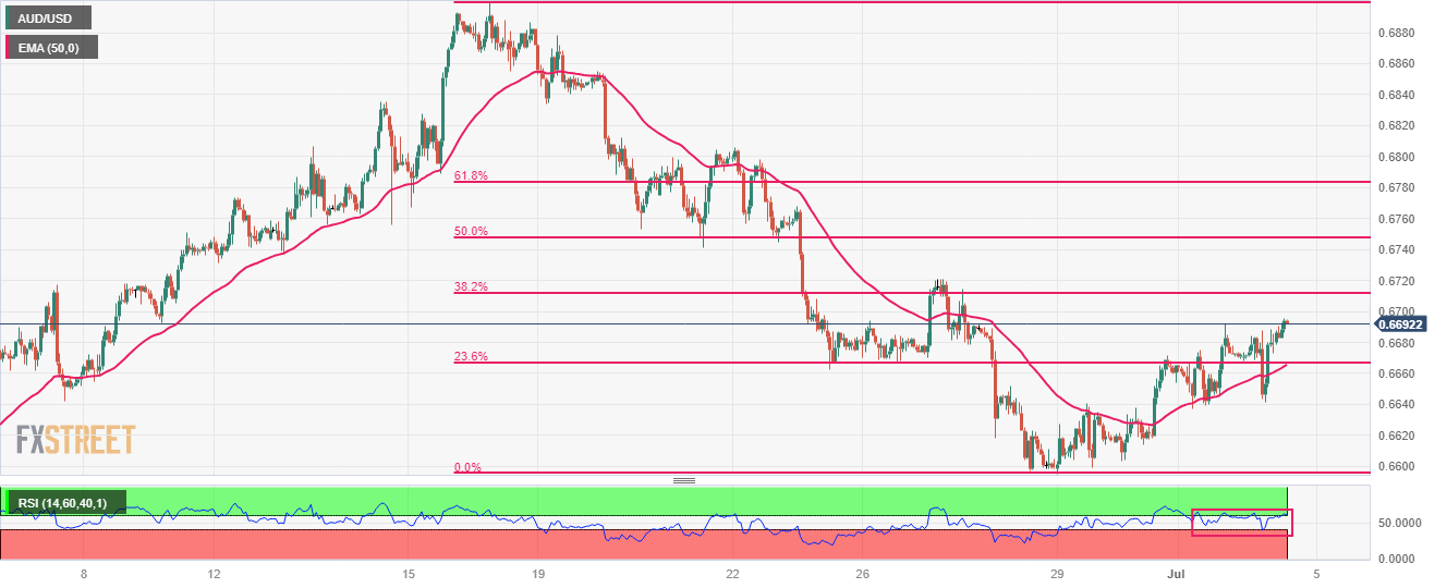 澳元/美元价格分析:在平静的市场气氛中接近0.6700