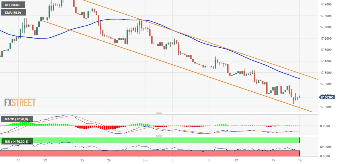 美元/墨西哥比索价格分析:空头寻求跌破17.00附近的下降通道支撑