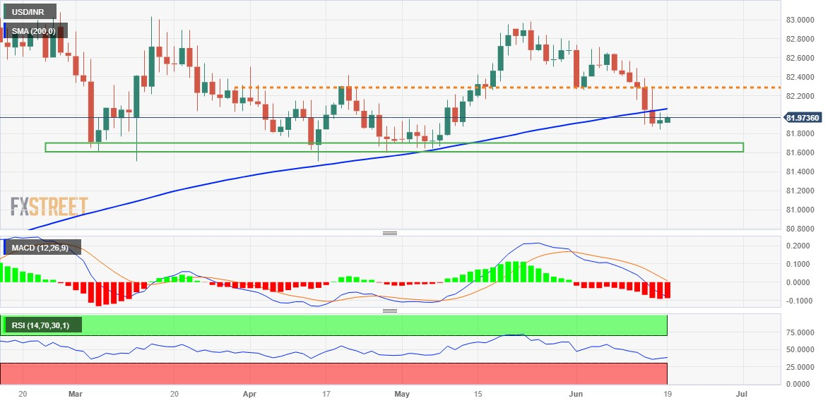 美元/印度卢比价格分析:盘整于82.00关口附近,遇阻200日均线似乎维持脆弱