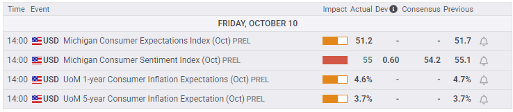 美国的消费者信心在十月初略有恶化,密歇根大学消费者信心指数的初步估计从九月的55.1降至55。该数据好于市场预期的54.2